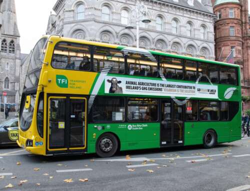 Go Vegan World is showcasing the Irish statistics, not to discredit farmers, but to remind members of the public of the consequences of creating a demand for animal products and to illustrate how veganism is a solution that we ignore at our peril. Our ads can be seen on billboards throughout Ireland.